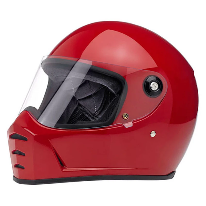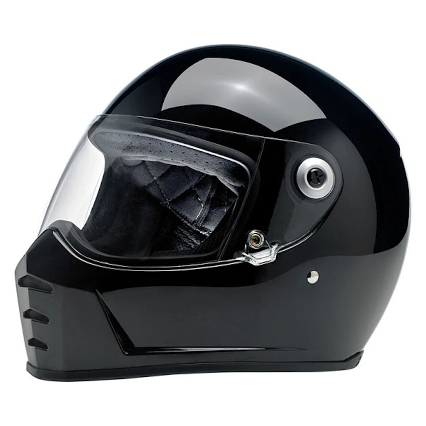 Progressively styled and rigorously tested, the Biltwell Lane Splitter, ECE and DOT approved, helmet is a top choice for riders who demand comfort and high performance. The aggressive looking lines of this helmet truly set it apart in the retro-styled helmet market. Features include a rugged ABS outer shell with hand-painted finish, ventilated and shock-absorbing EPS safety liner with gorgeous hand-stitched interior padding, removable cheek pads, clear anti-fog and anti-scratch CE-certified shield. Also the Lane Splitter contains audio communication pockets in ear recesses, Double-D chin strap lock mechanism and chin bar vents and venturi vent for ample airflow.Â
