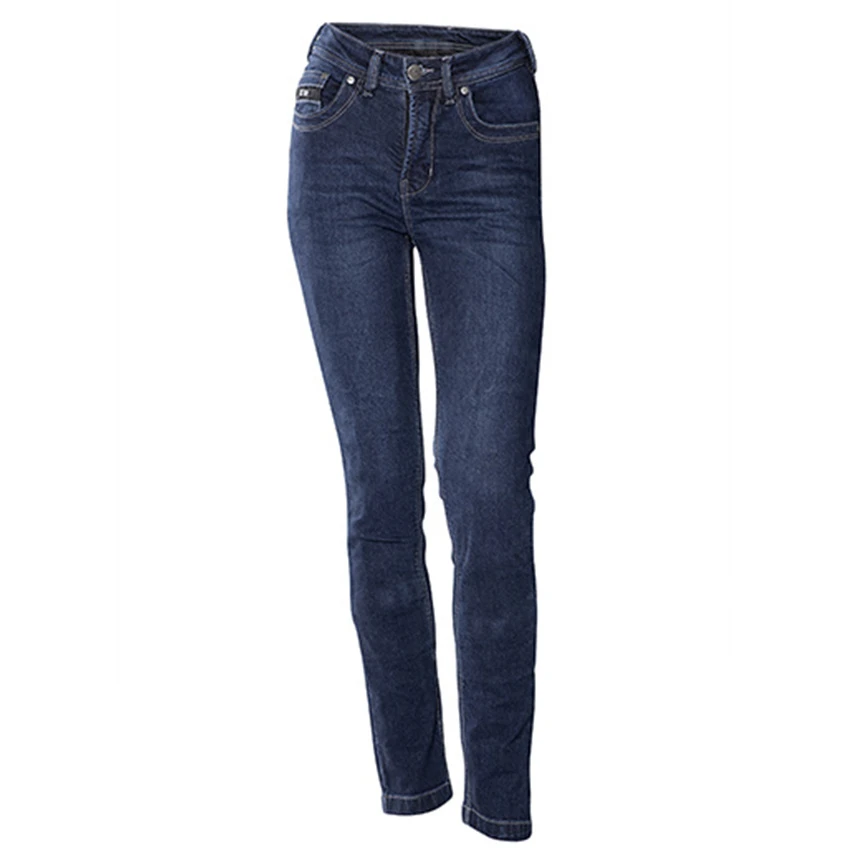 These comfortable motorcycle jeans for women are fully lined with aramid fibres. The Claw Britt has a slim fit. The jeans are made of 60% aramid and 40% polyester 210gsm. Equipped with Protector pockets on the knees and hips. The jeans come with loss CE-approved (Level 2) knee protection. Optional hip protection available.