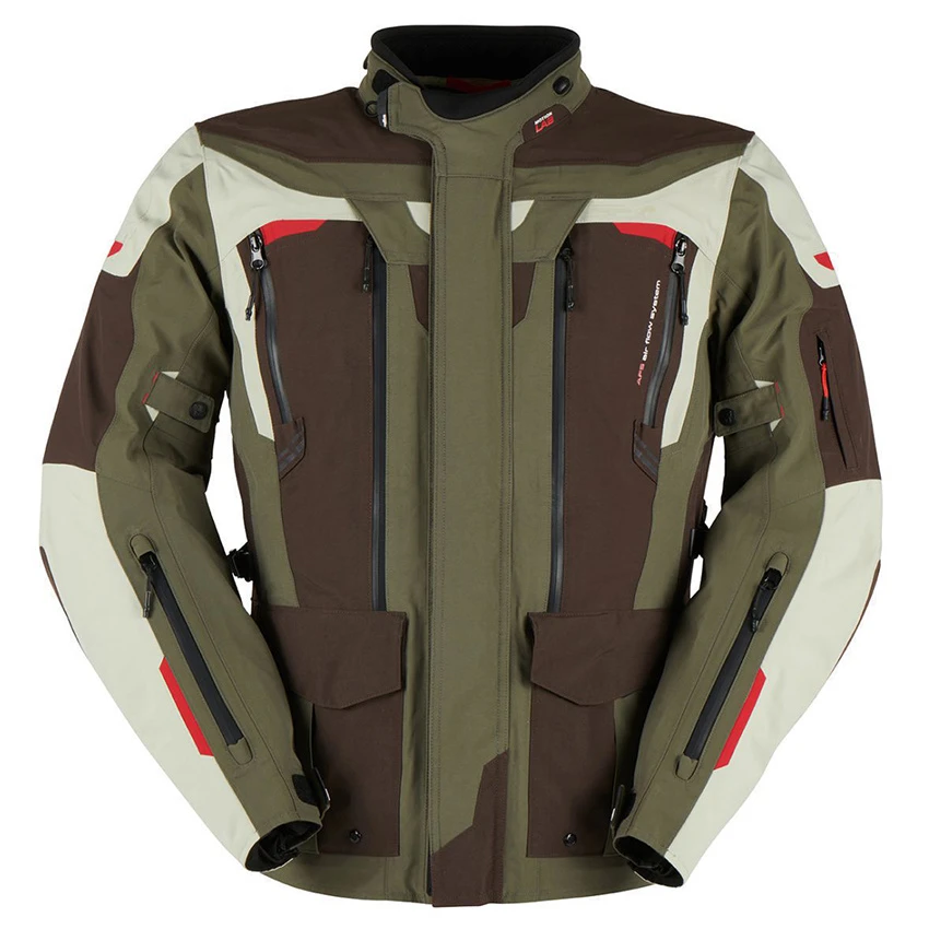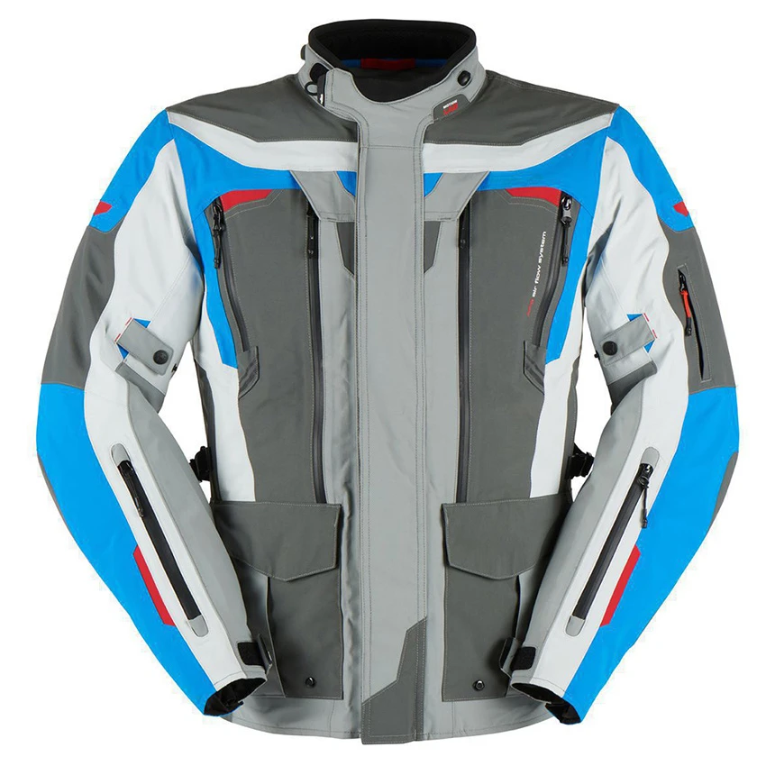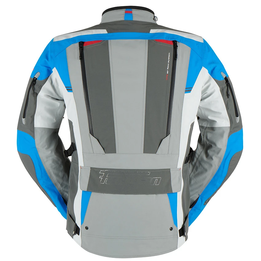 The Furygan Voyager 3C touring/Adventure men’s motorcycle jacket is made of durable 3-layer laminated polyester. This extremely technical motorcycle jacket makes all adventures possible in every climate. Even if you switch the seasons from one to another. Extreme heat, torrential rain or even polar cold, it masters all external elements thanks to its three-layer laminated technology. The AFS Max Adjustable Air-Flow System offers multiple ventilation zippers on the arms, chest, and back for improved airflow. The Voyager is standard equipped with D3O protectors on the shoulders and elbows, and prepared for a back protector insert.