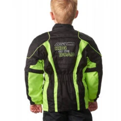“Kids on the Road” cool kids jacket including thermal lining. The sleeves can be extended by means of zippers. The jacket is adjustable at the waist. Protection on shoulders, elbows and back. With Scotchlite reflective stripes and 2 outer pockets.