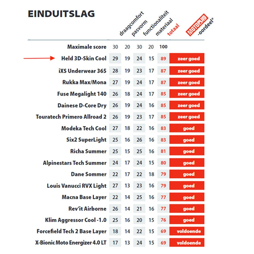 The Held 3D skin Cool top is a good base to wear under your textile or leather motorcycle jacket. This shirt knows how to cool your upper body in summer conditions. It absorbs perspiration and converts it to cooling the body.