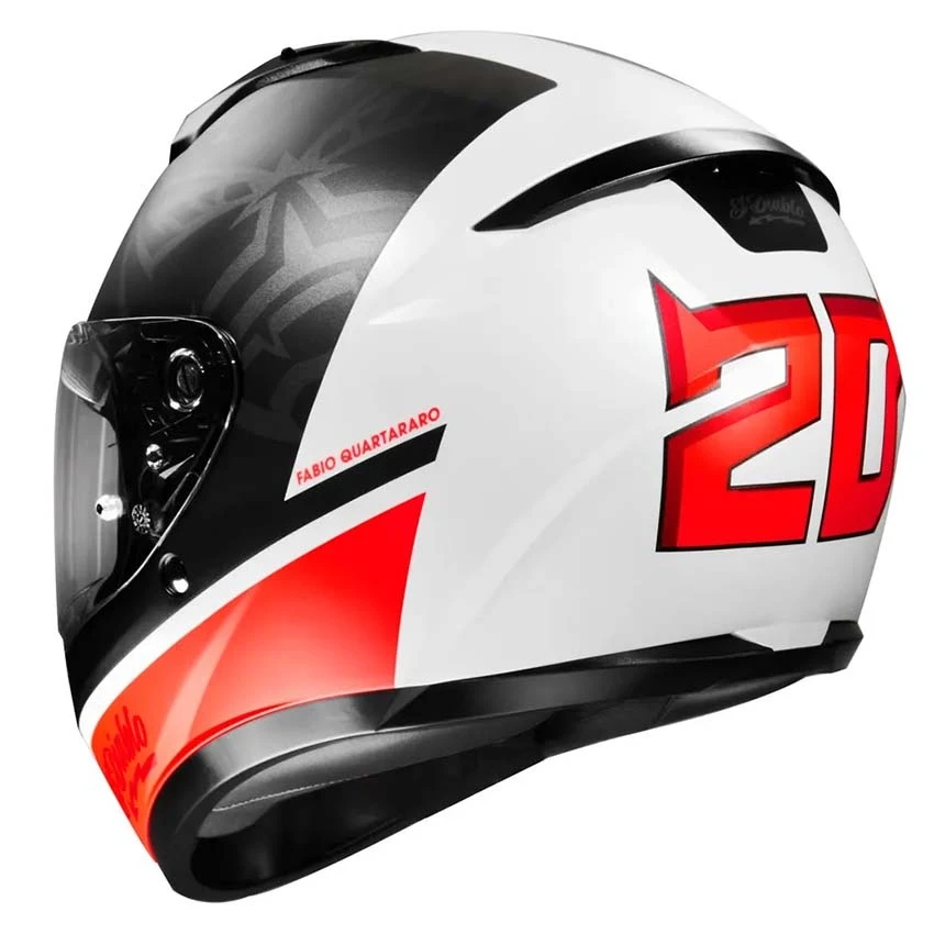 The HJC C10 Fabio Quartararo 20 motorcycle helmet is a competitively priced full-face helmet for riders that value quality and safety, offering a lightweight superior fit thanks in part to its Advanced Polycarbonate Composite shell that was designed usiang advanced CAD technology.