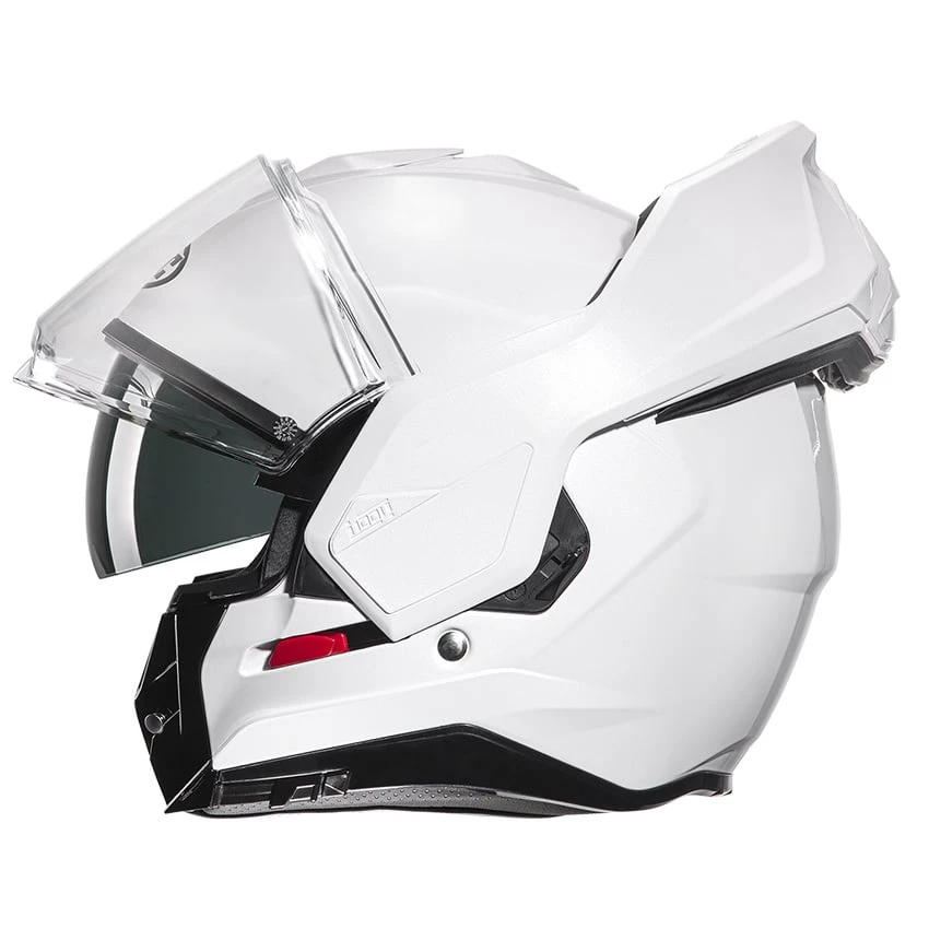 HJC modular helmet in which the chinbar can be fully folded back. The i100 is made from HJC’s Advanced polycarbonate material and is offered in 3 shell sizes for an improved fit. Designed and engineered with optimal balance and weight distribution for all-day riding comfort. Thanks to the P/J dual homologation you can use this helmet in both open- and full-face configuration, the i100 is also approved according to the new ECE 22.06 regulations. Fitted as standard with a HJ-36 pinlock ready clear visor and an integrated (dark smoke) sun visor that is easy to operate.
