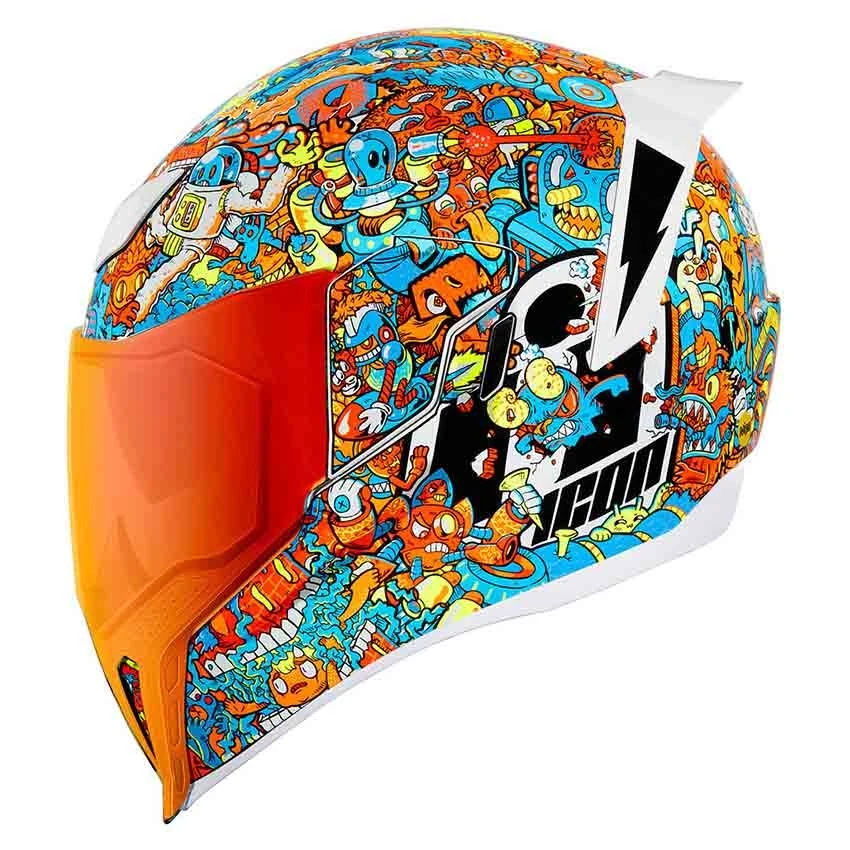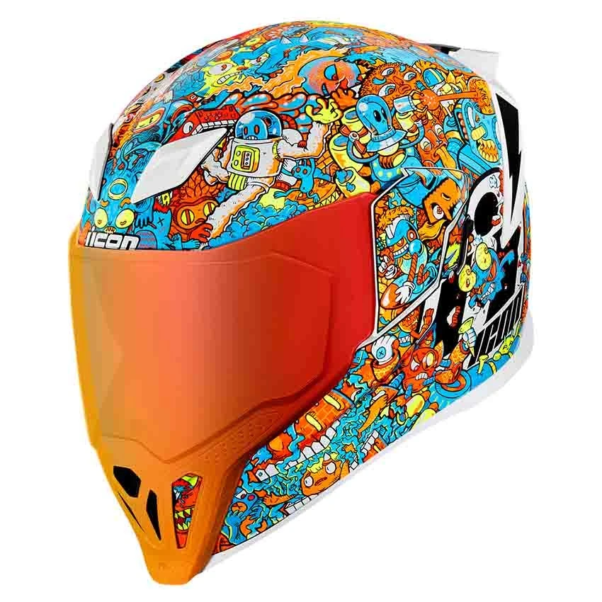 The Icon Airflite Redoodle motorcycle helmet’s ventilation system consists of strategically placed air vents, intakes, air channels and exhaust ports. The oversized chinbar intake enhances airflow, keeping you cool by routing air where you need it most. A decrease of both drag and weight was achieved by sculpting the traditional neckline of the Icon Airflite to avoid jacket or suit interference.