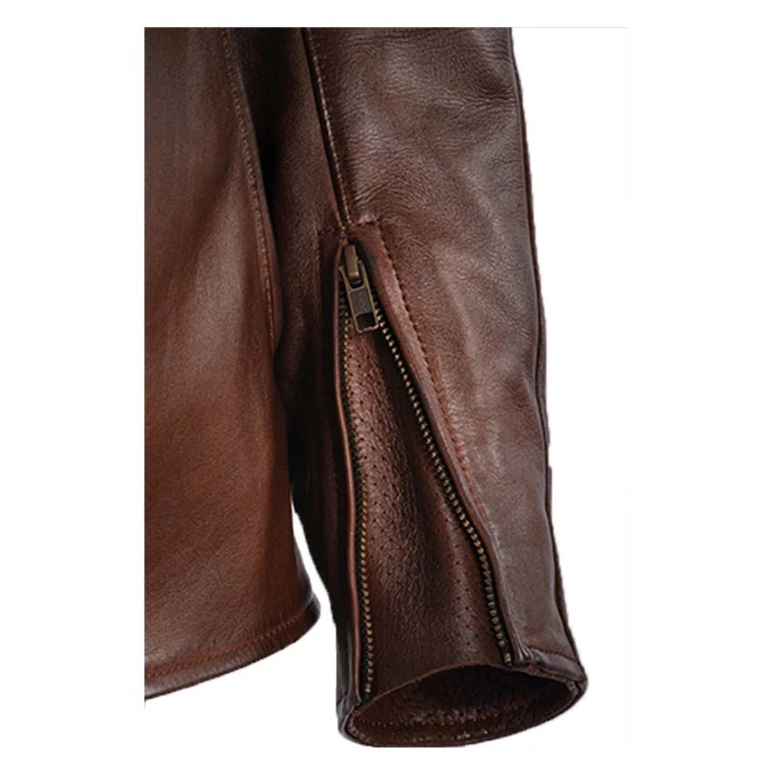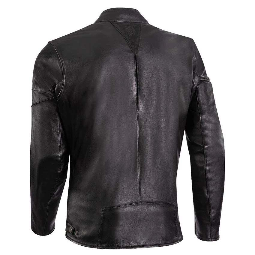 The Ixon Cranky is a thick, supple, semi-aniline calfskin motorcycle jacket, featuring top-quality craftsmanship and of high standards in terms of look and comfort. On the inside, the Cranky Lady jacket features top-of-the-range details. The fixed cotton lining has stretch-fabric strips for comfort. The satin thermal lining also includes stretch-fabric strips for maximum comfort. Lastly, there is a loop at the back to attach your jacket and trousers.