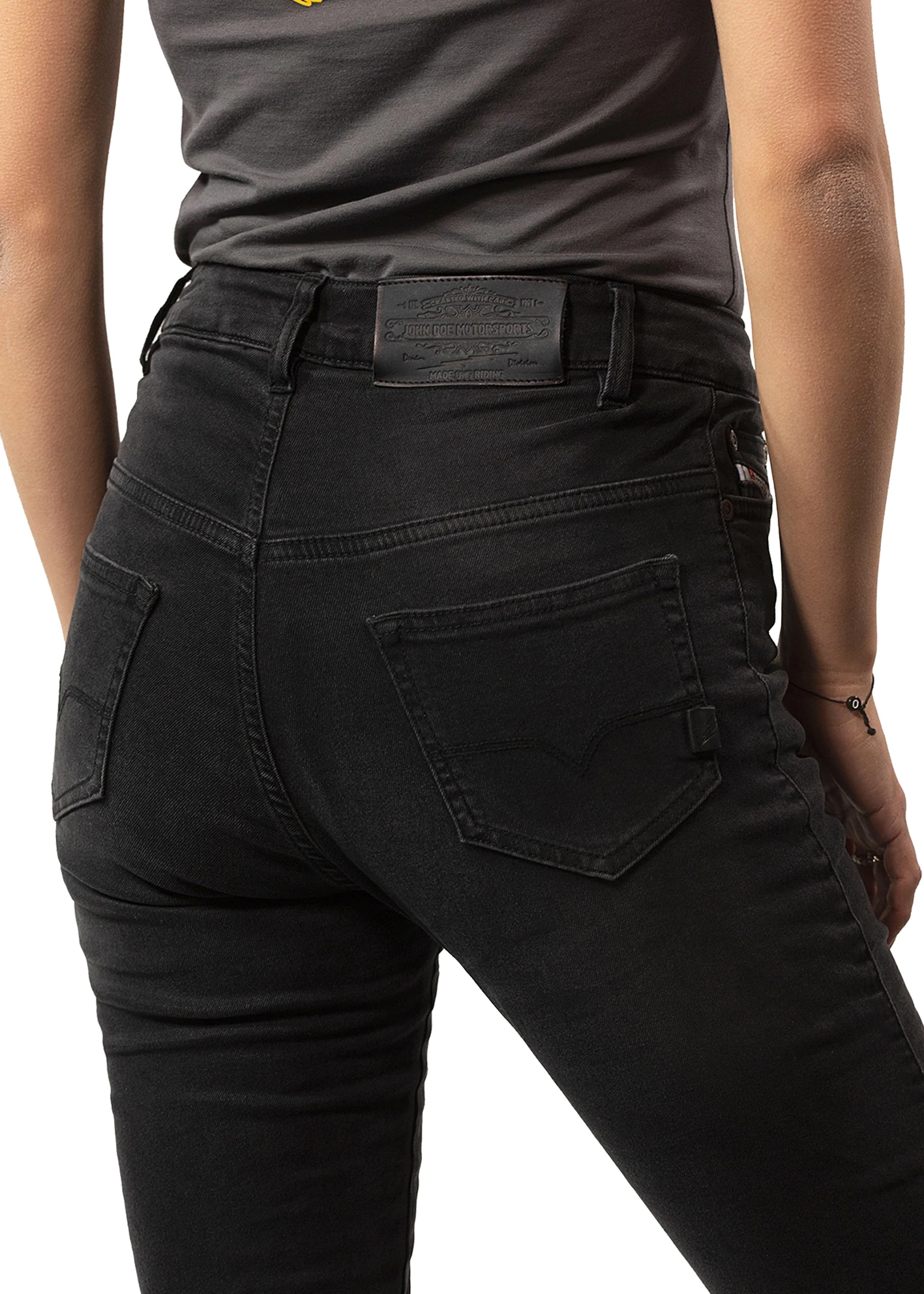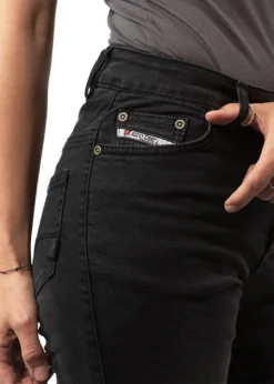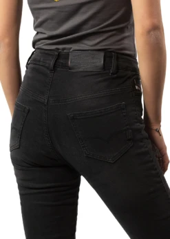 John Doe Betty High waist motorcycle jeans with XTM® fiber not only rock it in the looks department, the technical details give them full AA certification. This is mainly because of the XTM-Fiber® lining as well as knee and hip protectors for protection in any situation. Betty High Jeans XTM® come in a high-waist five-pocket design with outer fabric in stretch denim for supreme comfort.