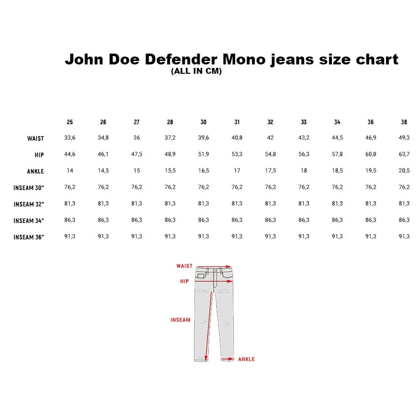 The John Doe Defender Mono Black is a single layer AAA certified cargo style motorcycle pants. Made from an XTM-Fiber® and stretch denim twill blend, including level 1 protectors on the knees and hips. The Single layer construction provides a cool and comfortable wearing experience on hot days. In addition to the standard front and back pockets that you find with normal jeans, the Defender also has classic cargo pockets and an additional YKK zippered pocket to give you enough space to keep all the things you need for your travels.
