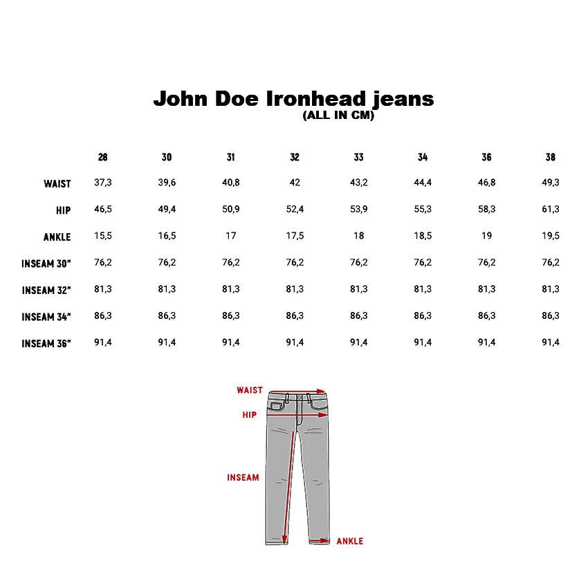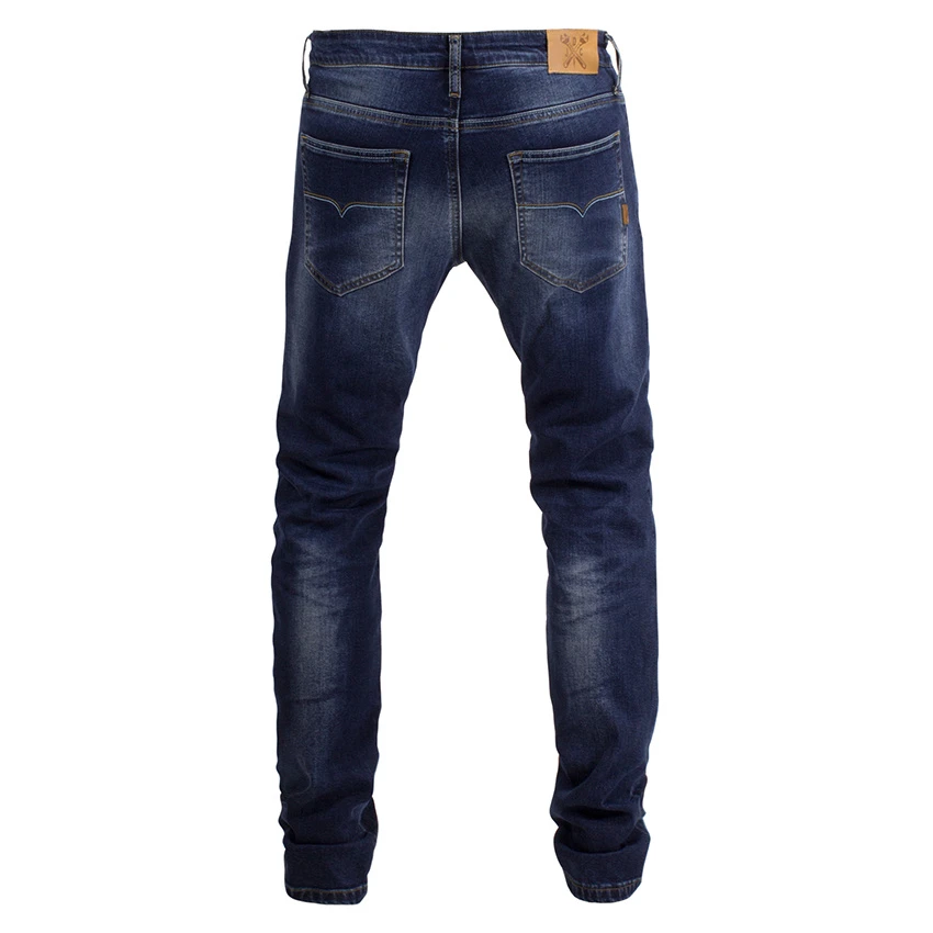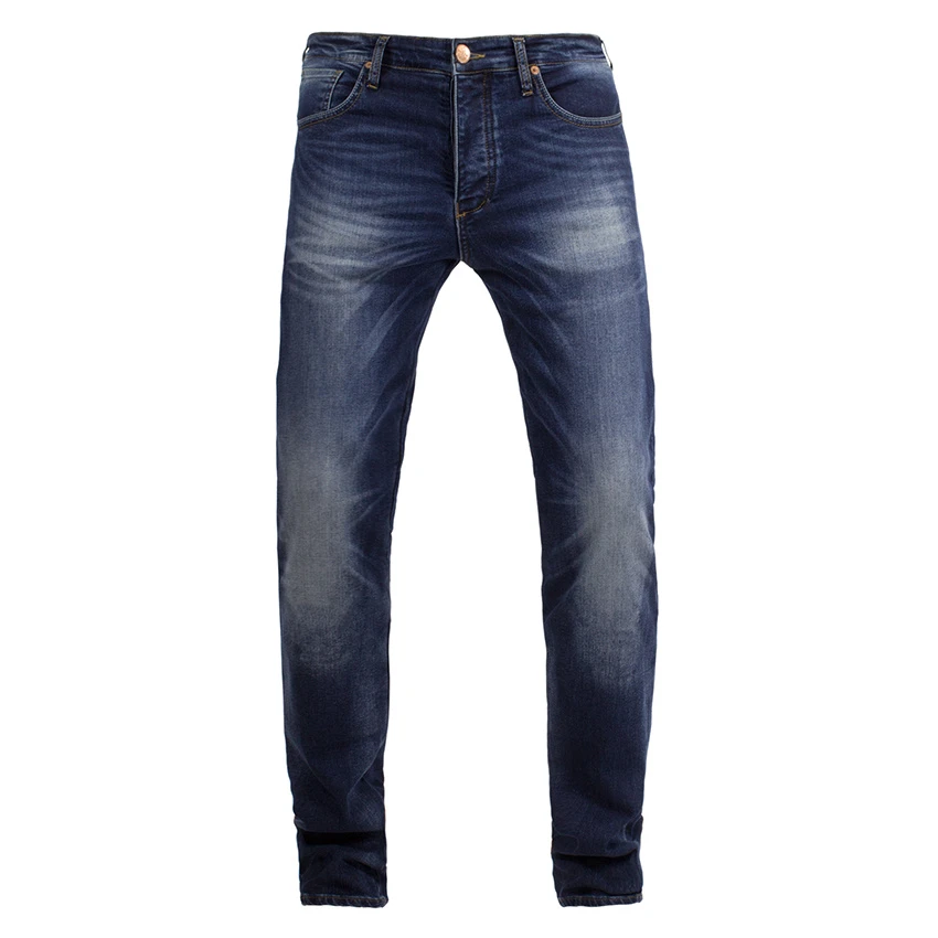 John Doe Ironhead Mechanix Used Dark Blue with XTM-Fiber motorcycle jeans. The XTM-Fiber® lining is many times as strong as any metal and will keep you safe in any situation thanks to the added knee and hip protectors. Ironhead Jeans XTM® give you a slim-fit five-pocket-style pair of jeans with AA certification. The stretch denim twill outer fabric offers a lot of comfort and a great fit.