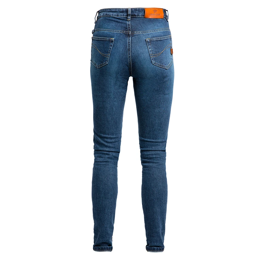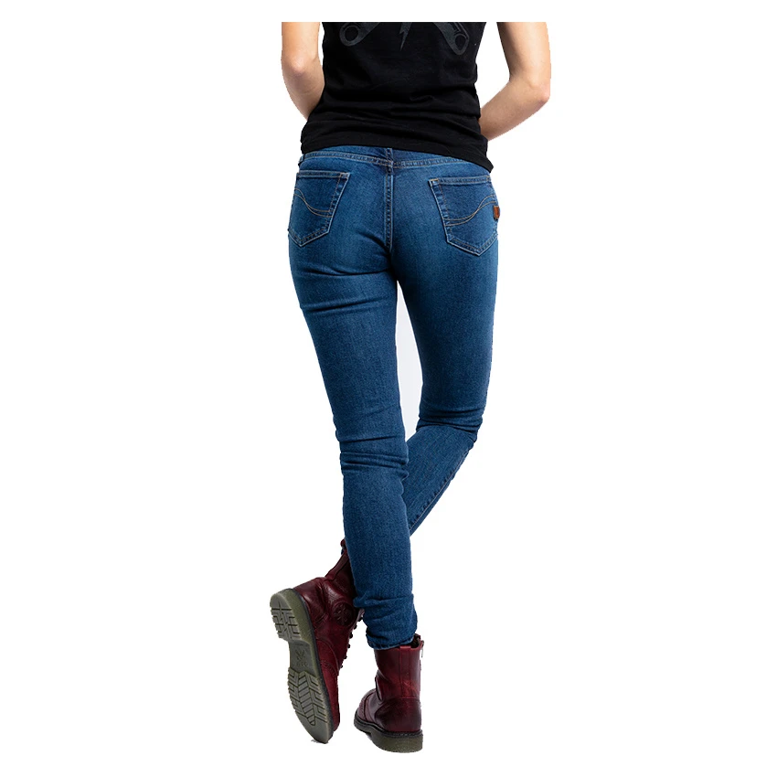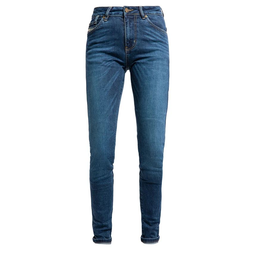 The Luna High combines John Doe’s XTM-Fiber® with denim outer fabric in a specialised weaving process, making these motorcycle jeans just one-layer. The single layer and stretch fabric guarantees for extreme comfort and well-fitting motorcycle jeans that fit and feel like normal jeans. Standard delivered with level 1 knee and hip protectors, which makes these motorcycle jeans an AAA-level protective motorcycle pants. Therefore these 5-pocket motor jeans with a high-waist design offer sufficient protection in every situation, in addition, the fabric is water repellent and you can enjoy ventilation thanks to the Coolmax technology.