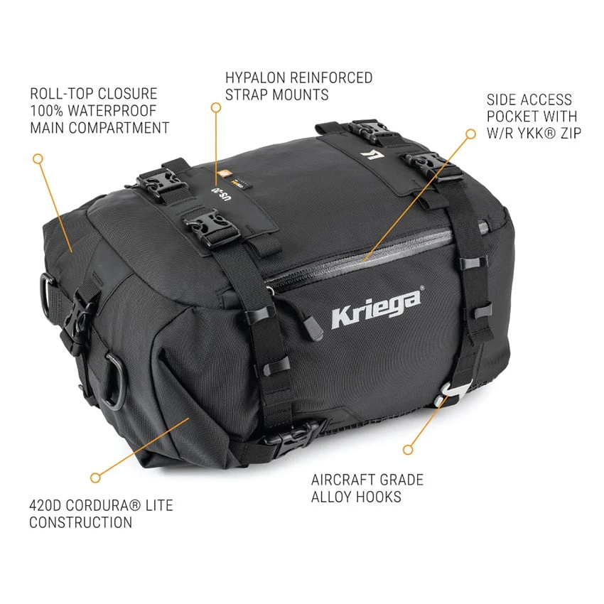 The best selling Kriega US-Drypack System has led the way for universal-fit, waterproof carrying on a motorcycle for over 15 years. The classic design has been further enhanced with the introduction of CORDURA® fabrics for the main body construction. With increased durability and abrasion resistance, the versatile US-Drypack System provides guaranteed all-weather protection for your gear on any type of motorcycle.