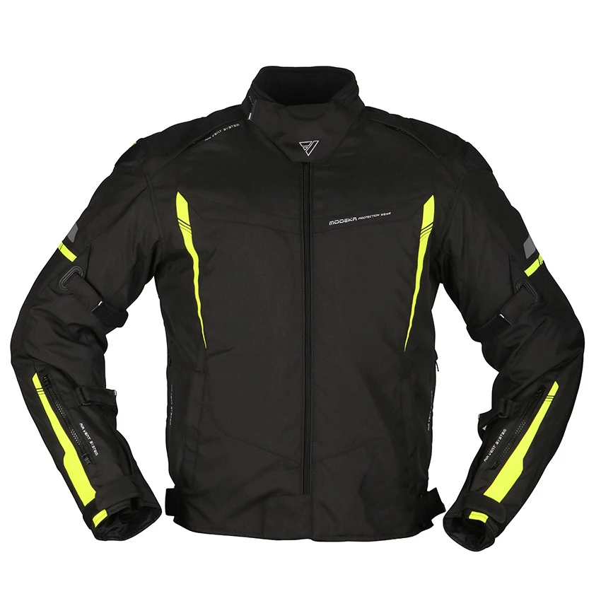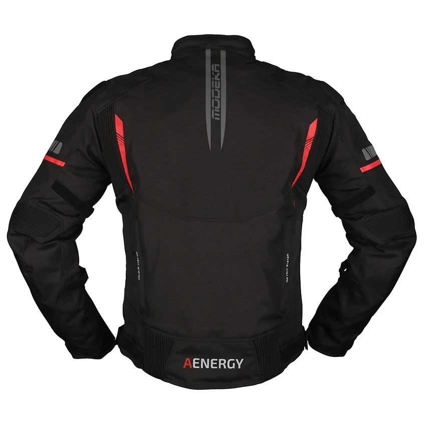 The Modeka Aenergy is an all-season motorcycle jacket. The thermal lining is removable and if you open the ventilation zippers, the jacket is also very pleasant on summer days. Furthermore, this jacket is equipped with a waterproof and breathable Humax® membrane. On the shoulder and elbows, you will find YF level 1 protection and in several places you can adjust the jacket with Velcro for a perfect fit.