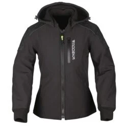 For the ladies novice motorcyclist or for experienced riders who want an ‘extra’ easy softshell jacket. Yes, the Clarke Lady is water resistant, but not if you whirl through the pouring rain for hours. Yes, the jacket is windproof and has a removable thermal lining, but in winter conditions the jacket is really a bit too cold. The hood is simply removable. For very little money you just buy a multi-season jacket that also looks timeless and fashionable. Shoulder and elbow protection included, back protection is optional.