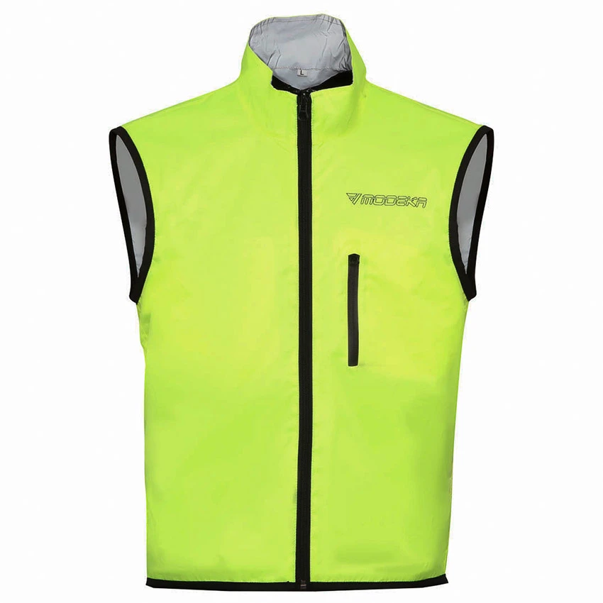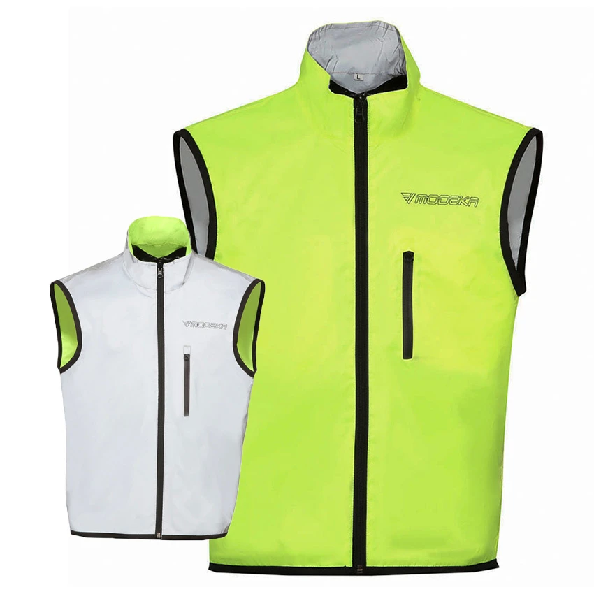 Stay visible on the road with the Modeka Double Eye reflective vest. Reversible so you can use 2 colours for best visibility during the day and at night. This High visibility vest is made from 100 % polyester.Â