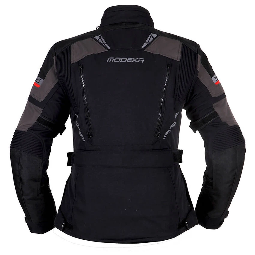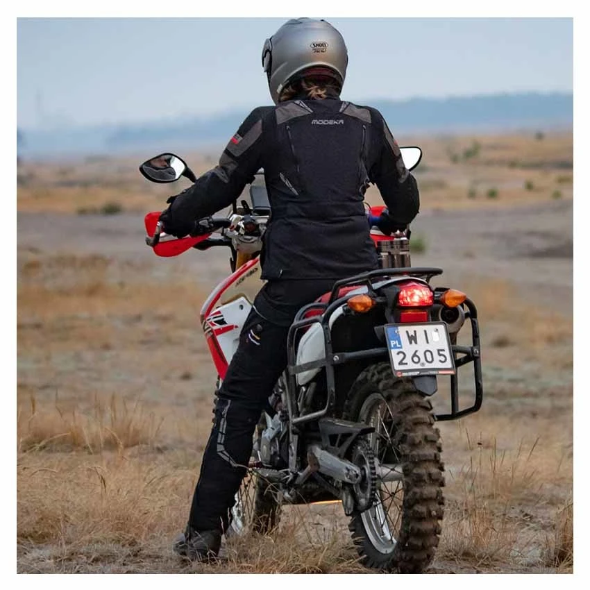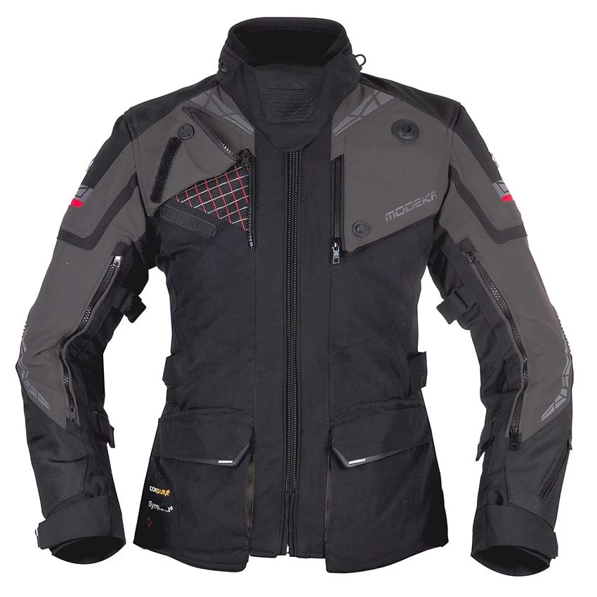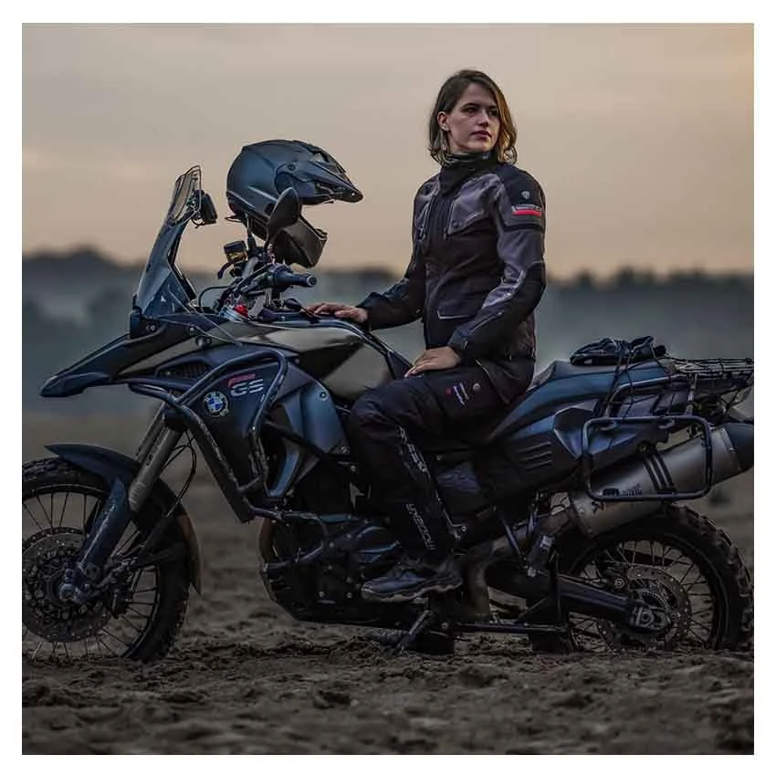 The Modeka Panamericana II Lady is a real all-rounder among motorcycle jackets! Perfect for the needs of Adventure and Touring motorcyclists. The jacket is equipped with protection Level 2 from Sas-Tec on the back, shoulders and elbows. The combination of wear-resistant materials and this protection results in an extremely robust motorcycle jacket for women. And also a multifunctional jacket, thanks to the removable waterproof* Sympatex membrane. The thermal inner lining is also removable and the Panamericana II is equipped with ventilation zippers on the front for the necessary cooling.