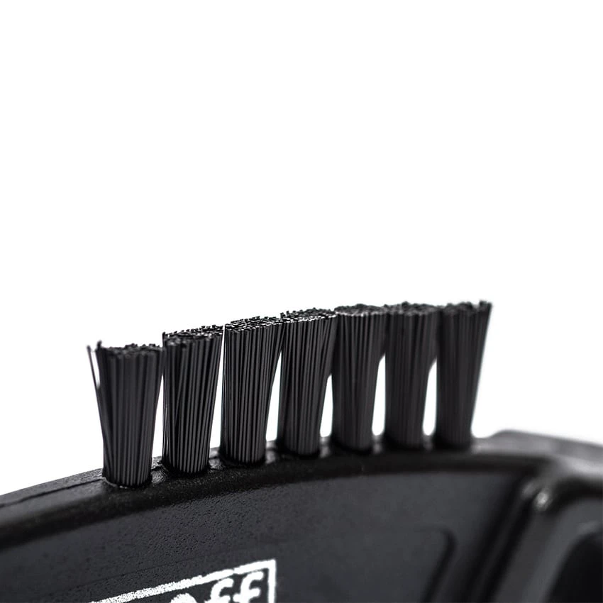 Our Soft Washing Brush features a sintered bristle compound that’s designed to clean your wheels and components while caring for delicate finishes. Its new design has a tough, impact resistant handle that won’t slip in extreme conditions, an oversized head for fast cleaning of large areas and rubberised impact zones for maximum protection.Â