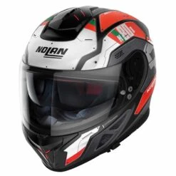 N80-8 Starscream Nolan’s top of the range road full-face helmet the followup of the very popular N87. The modern design enhances every detail, from the shell to the air intakes. Thanks to its rich technical characteristics the N80-8 is the ideal helmet for any occasion. The large surface of the S/R (Scratch Resistant) visor makes it possible to have a broader view. The innovative visor mechanism with tilting functionality allows a greater extension of the area covered by the Pinlock® lens. Integrated sunvisor which can be easily removed for maintenance and cleaning and is fully-adjustable. Nolan’s AirBooster Technology for optimal ventilation keeps your head cool in any situation.