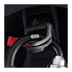 - Lightweight aluminium carabiner for attaching to helmet D-rings.