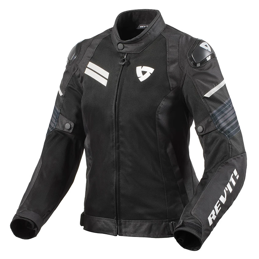 A waterproof, sport-oriented jacket that keeps female street riders dry in the rain. Taking the bold graphics used throughout the Apex design series, the Revit Apex H2O Ladies has its own flair and fortitude. Its waterproofing comes via the fixed Hydratex|Mesh G-Liner construction. To further ensure the cold doesn’t enter the motorcycle jacket, it is equipped with a wind catcher behind the front zipper. By also adding a detachable thermal liner the Revit Apex H2O Ladies get even more seasonal versatility. And to top it all off, the bold graphics that run across the chest, upper back, and shoulders make statement; statement that says, “I’ll ride in the rain and look good/be visible while doing it.” Stay dry on your rides with the Apex H2O Ladies motorcycle jacket.