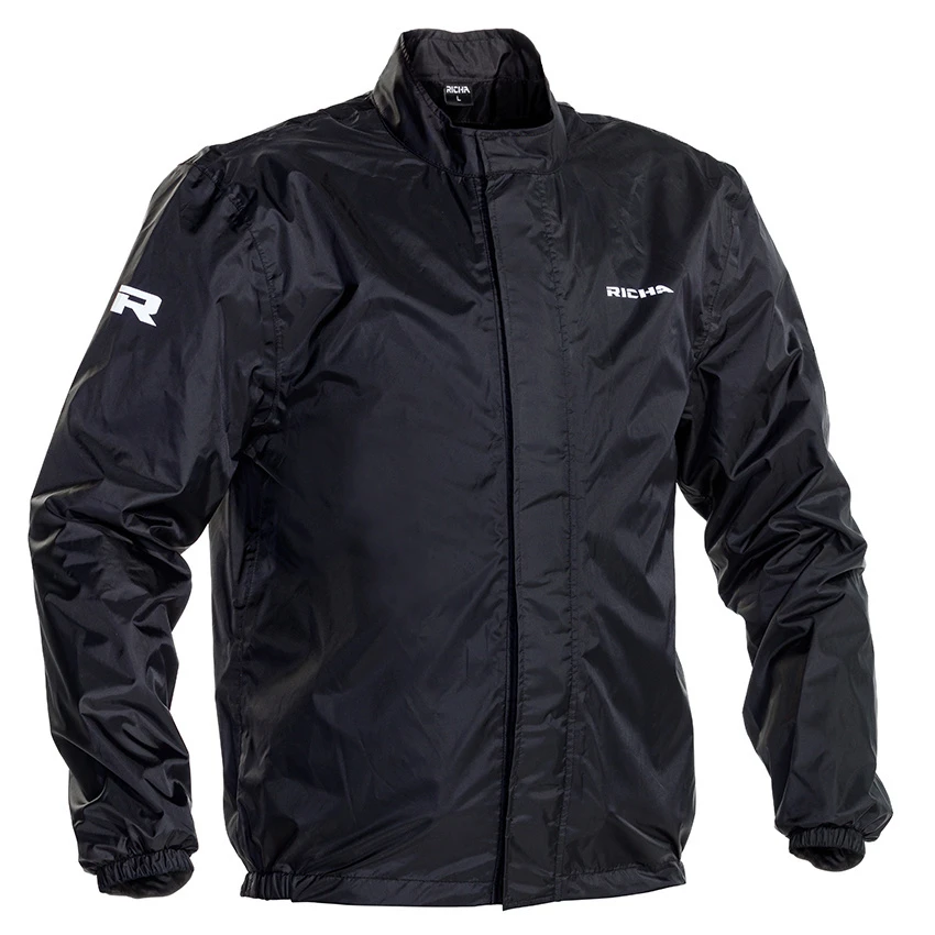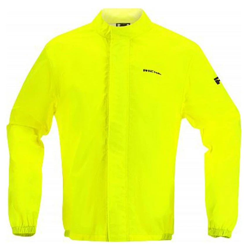 The Richa Aqauguard rain jacket is made out of Nylon Tafeta material. Due to the stretchable outer shell. The Aquaguard can be easily put on, thanks to the large front zipper closure. The rain jacket has a puller chord at the bottom side for good Fitting.Â