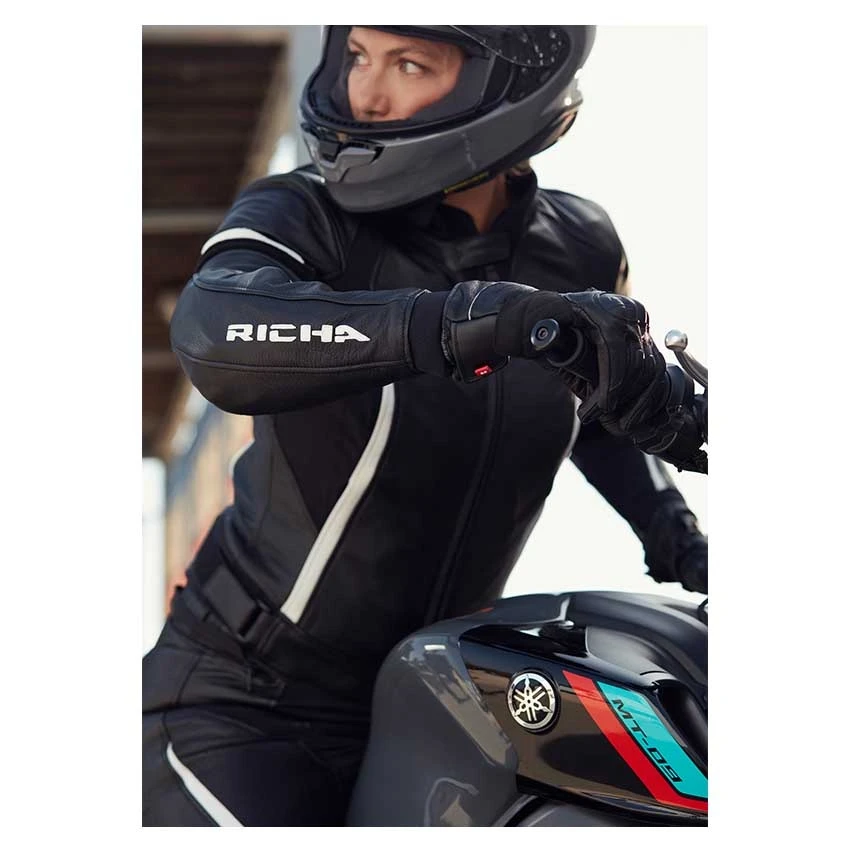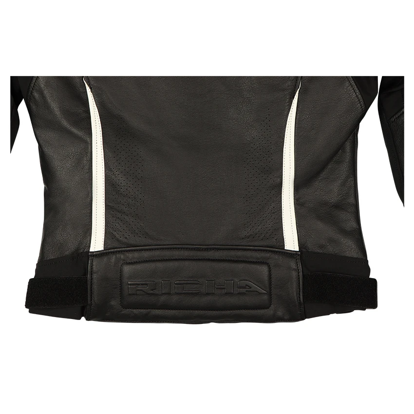 The Laura from Richa is a sporty leather women’s motorcycle jacket. Made from premium cowhide leather with light perforations on the front and back for optimal ventilation in warm weather. For the colder days, this motorcycle jacket is equipped with a removable thermal liner. The strategically placed stretch panels provide a tight yet comfortable fit. Standard with D3O protection on the shoulders and elbows. Optional L1 or L2 back protection and chest protection.