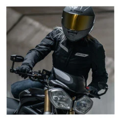Waterproof textile motorcycle jacket specially developed for female motorcyclists. With a slightly tailored cut and adjustable on the upper arms and hips for a perfect fit. The 5.000mm waterproof Z-liner keeps you dry. Equipped with level 1 protectors on the shoulders and elbows. Prepared to upgradable to D3O® level 2 impact protectors