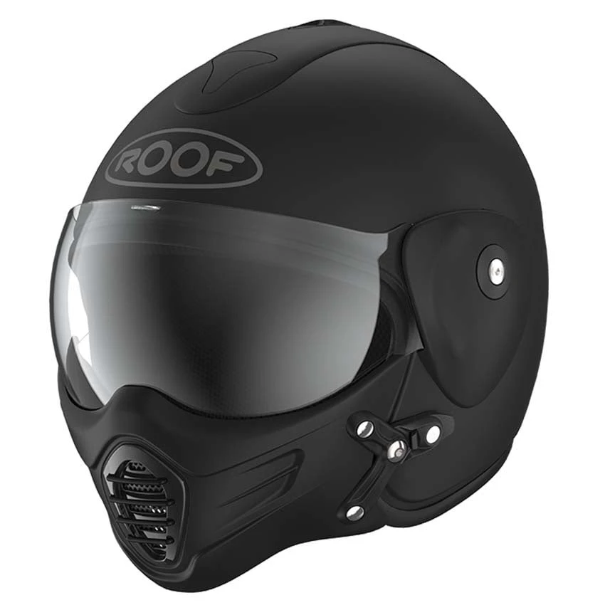 The Roof RO9 Roadster motorcycle helmet is fitted with a high-quality fiberglass shell ensuring safety, lightweight and longevity. The Roadster is equipped with a patented magnetic locking system of the mask, a unique feature on the market ensuring optimum ergonomics and secure locking onto the shell.