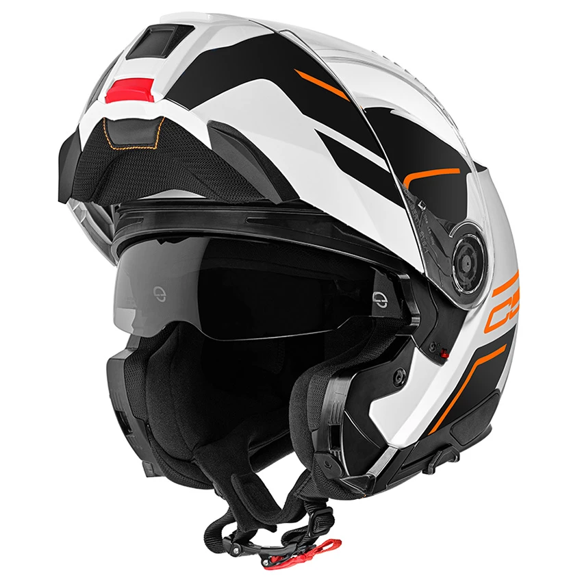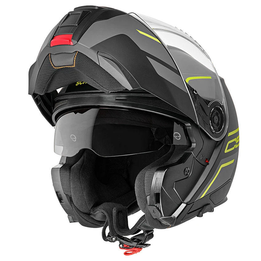 The Schuberth C5 Master helmet blends ultimate safety, amazing aerodynamic and aeroacoustic performance with compact and light design. One of the first helmets featuring the P/J homologation and approved according the new ECE 22.06 regulation. A DFP Fiber Glass shell reinforced with Carbon fiber provides for improved shock absorption and lighter weight. The Schuberth C5 offers aeroacoustic comfort with only 85 dB(A) at 100 km/h in a naked bike.
