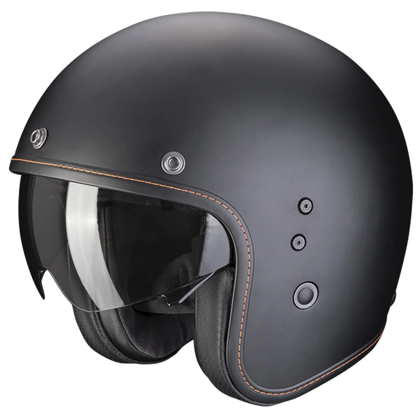 The Scorpion Belfast Evo Solid offers comfort in a very stylish high quality jet helmet. Light and comfortable, you’ll appreciate it all the way through. Equipped with the Scorpion speedview sun visor for unimpeded driving in sunny weather. The lining of this helmet is equipped in a soft fabric with vintage style. The interior is of course removable and washable.