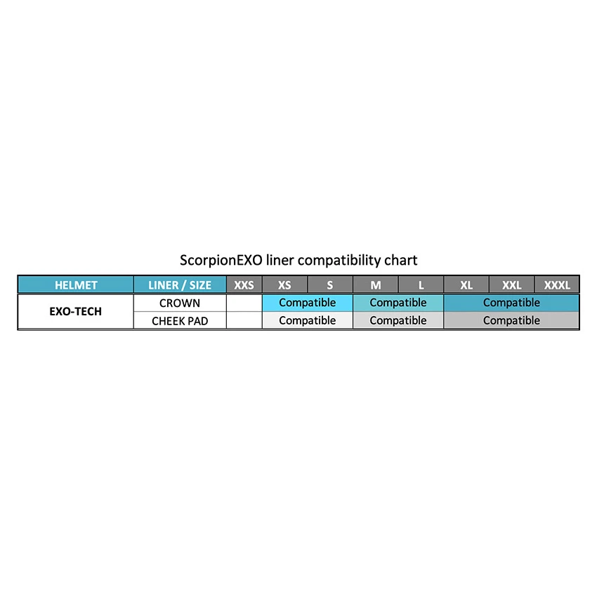- Check the size chart to see which liners and cheek pads fit in which size helmet.