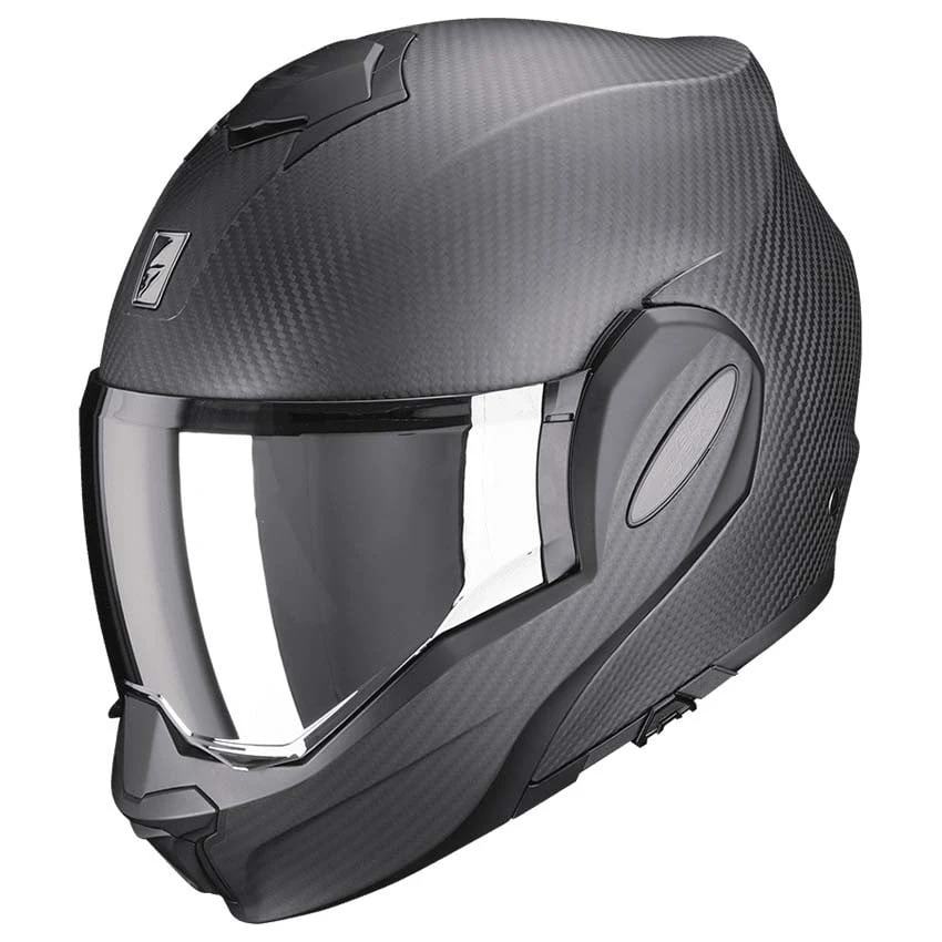 Scorpion’s flip-back masterpiece with a carbon composite shell. Exo-Tech Evo Carbon is a light-weight-flip-back helmet with all easy operation and convenient features plus chin bar locker for better safety. Small, sleek, and really full face looking shell design is still the same but with elegance and premium weaved carbon fibre surface adds an outstanding nobility. On top of that the Exo Tech Evo Carbon is ECE 22-06 certified.