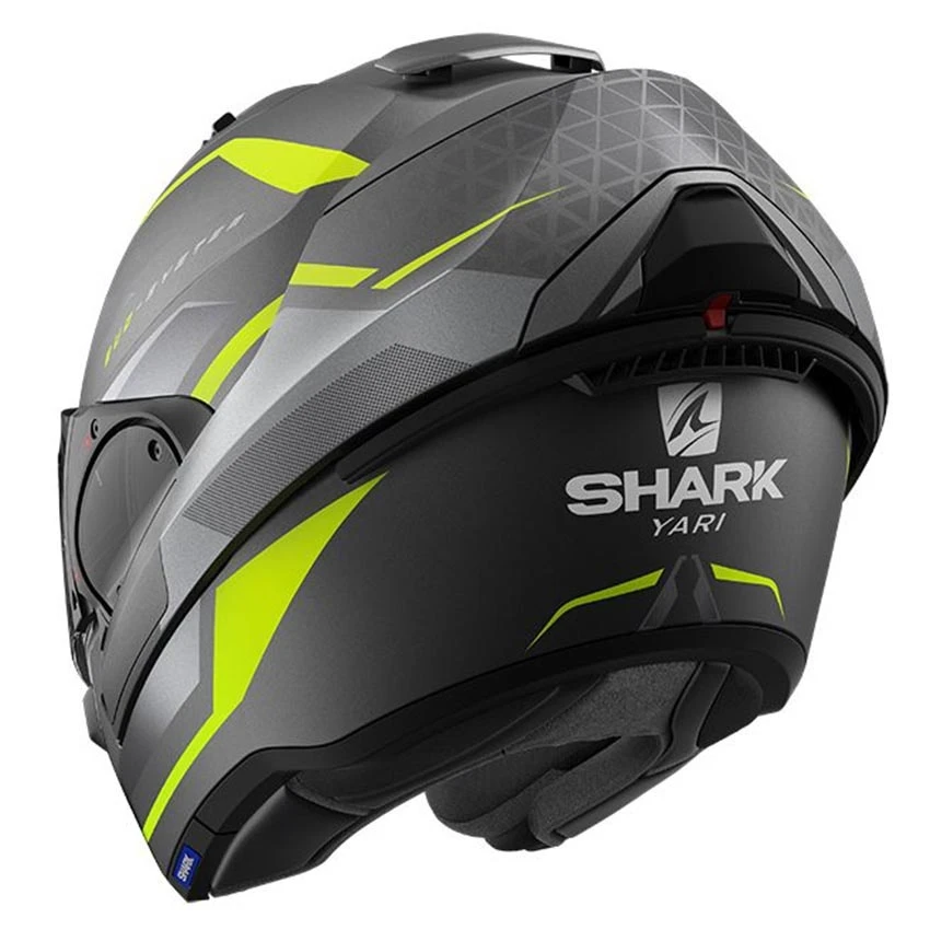 The EVO-ES is an excellent option for motorcyclists who choose the convenience of a jet helmet combined with the safety of a full-face helmet. With this multifunctional flip-up helmet, the chin part falls completely into the helmet shell when open, so that annoying wind – even at higher speeds – no longer plays a role. When closed, the EVO ES offers almost the same safety as any full-face helmet. EVO ES has an easily operated sun visor.
