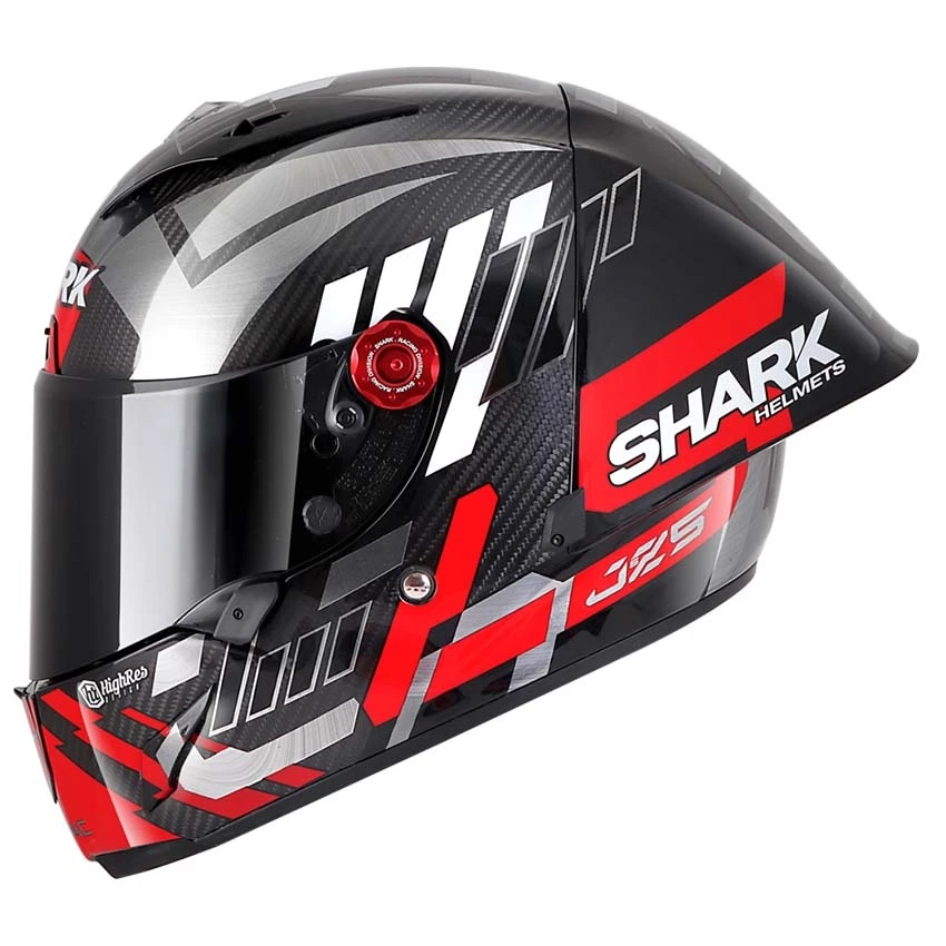 Optimal aerodynamics, the unique airfoil has been developed from digital simulations and validated in the wind tunnel for exceptional air penetration and minimised buffeting effect, offering optimal stability even at high speeds. Developed by our R&D design office and approved for use in competition. Premium finishes and, like Shark MotoGP riders, you can enjoy a Racing package comprising an official carry bag and a Dark Smoke anti-scratch and anti-fog visor.Â