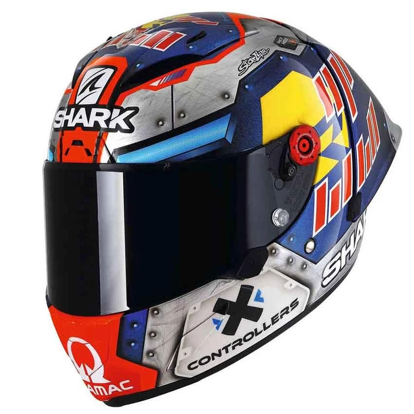 Designed for the track, the Shark Race-R PRO GP Martinator Signature is the ultimate racing helmet! Its distinctive sign? A high-performance aero spoiler developed in close collaboration with Shark top riders. Tested in competition in the most intense situations, the Race-R PRO GP is the perfect combination of unique design, safety, aerodynamics, technological innovations and premium finishes.