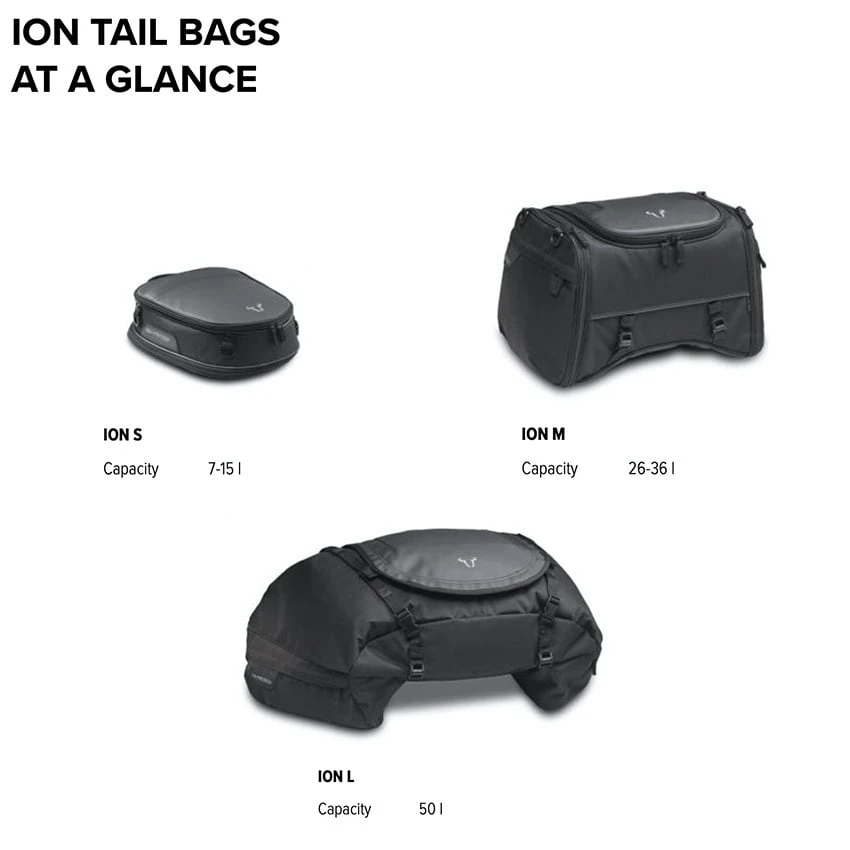 The volume of the ION S tail bag can be expanded with a zipper from 7 to 15L and therefore offers enough storage for drinks, a change of clothes, safety vest and other little things that you need on a daytrip or short trip. The compact bag can be lashed onto riveted D-rings with the included loop straps. Two flaps with hook-and-loop closure and a slot on the underside also enable quick and secure attachment to the seat or rack. The reinforced sides, the padded lid and straps for tightening the volume expansion guarantee a solid shape. Things stowed in the outer pocket or mesh compartment in the inside of the lid are particularly close at hand. A carrying handle makes the ION tail bag a practical travel companion.